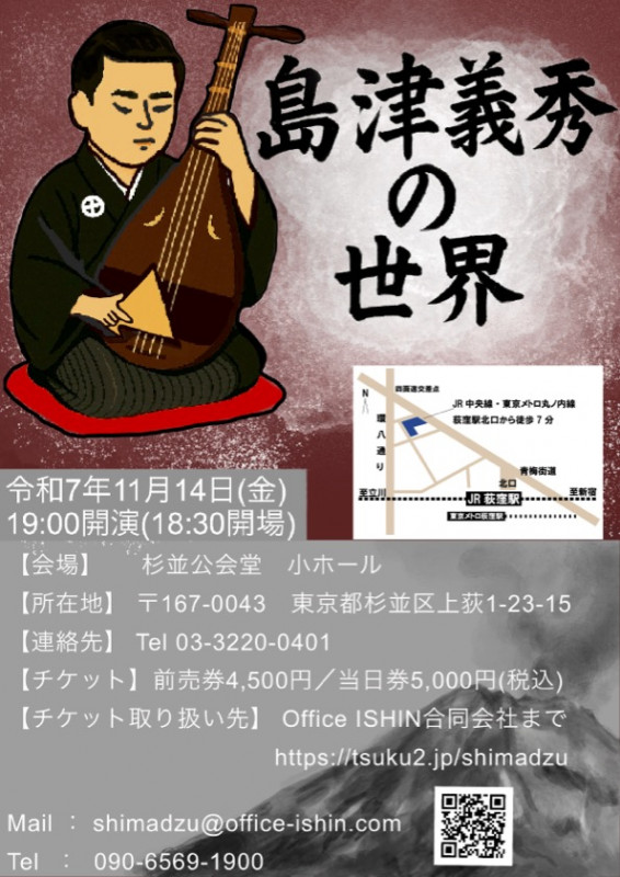 2025.09.11 弾奏会 11月14日(金)開催!薩摩琵琶弾奏会「島津義秀の世界」ご案内について こんにちは。今回、薩摩琵琶独演会「島津義秀の世界」を11月14日(金)に開催する運びとなりました。移動費の高騰に伴い、今回から料金を変更させていただいております。前売り券がお得になっておりますので、以下のページより事前にお申し込みいただけますと幸いです。https://ticket.tsuku2.jp/events-detail/22002680513520 PDFを開く